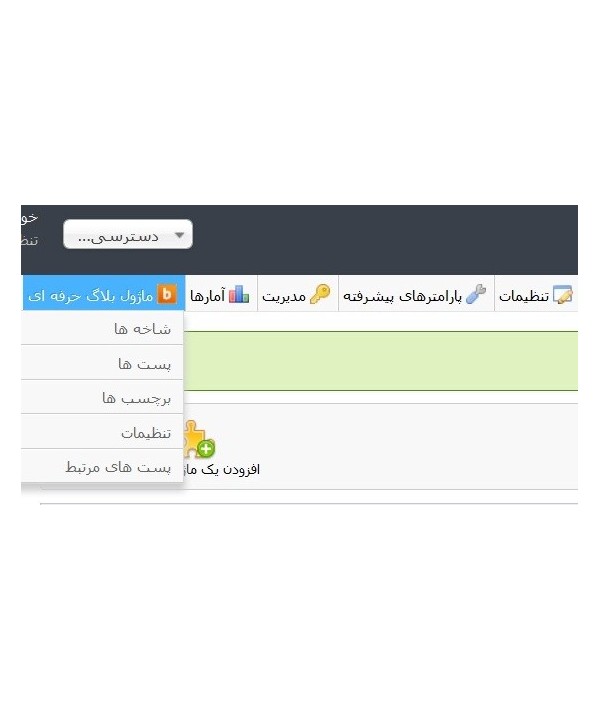 اضافه نمودن خودکار منویی با نام بلاگ حرفه ای برای مدیریت کامل بلاگ شما به منوهای مدیریت پرستاشاپ شما