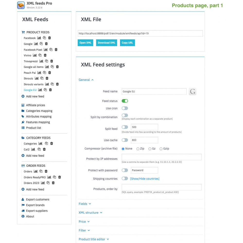 اگر داده ها محرمانه هستند، می توانید یک رمز عبور در فید xml خود اضافه کنید.